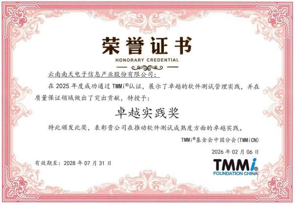 南天信息及南天软件双双荣获2025年TMMi卓越实践奖和卓越贡...