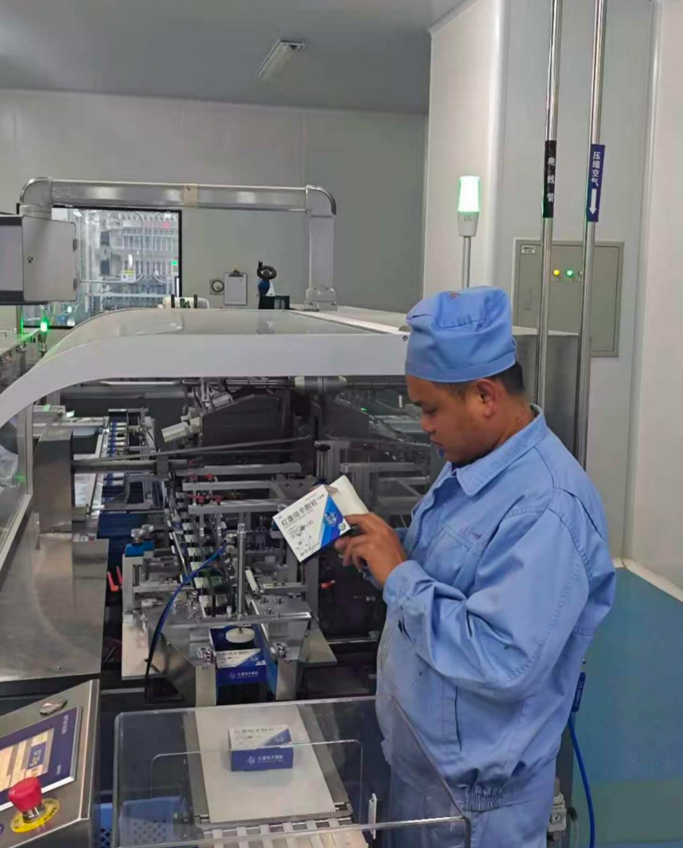 走进基地智能化车间,从2023年起陆续升级的智能化设备正在发挥优势:颗粒线自动化生产线通过运动处理器精准操控,每包药品自动称重、封口,不仅让生产效率翻倍,人工成本下降超50%,包材损耗减少10%-30%。“以前靠人工分拣包装,智能化升级生产线连续运转,酚氨咖敏片、复方岩白菜素片这些应季药品,每天都能批量出厂。”叶亚斌介绍。